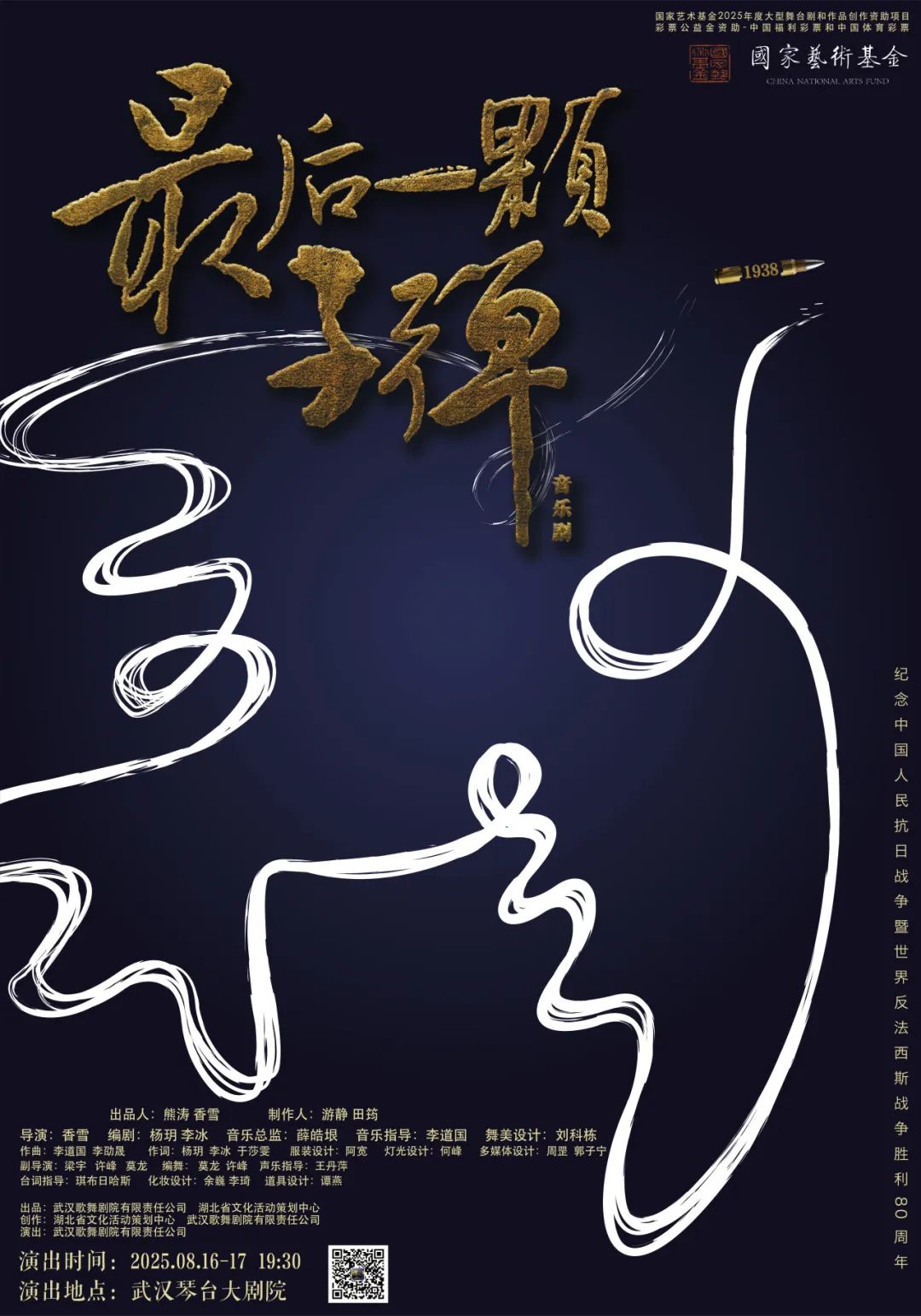 8月16日-17日,值此中国人民抗日战争暨世界反法西斯战争胜利80周年庄严时刻,国家艺术基金2025年度大型舞台剧和作品创作资助项目——音乐剧《最后一颗子弹》在武汉琴台大剧院首演,用艺术之火点燃这座城 [更多]